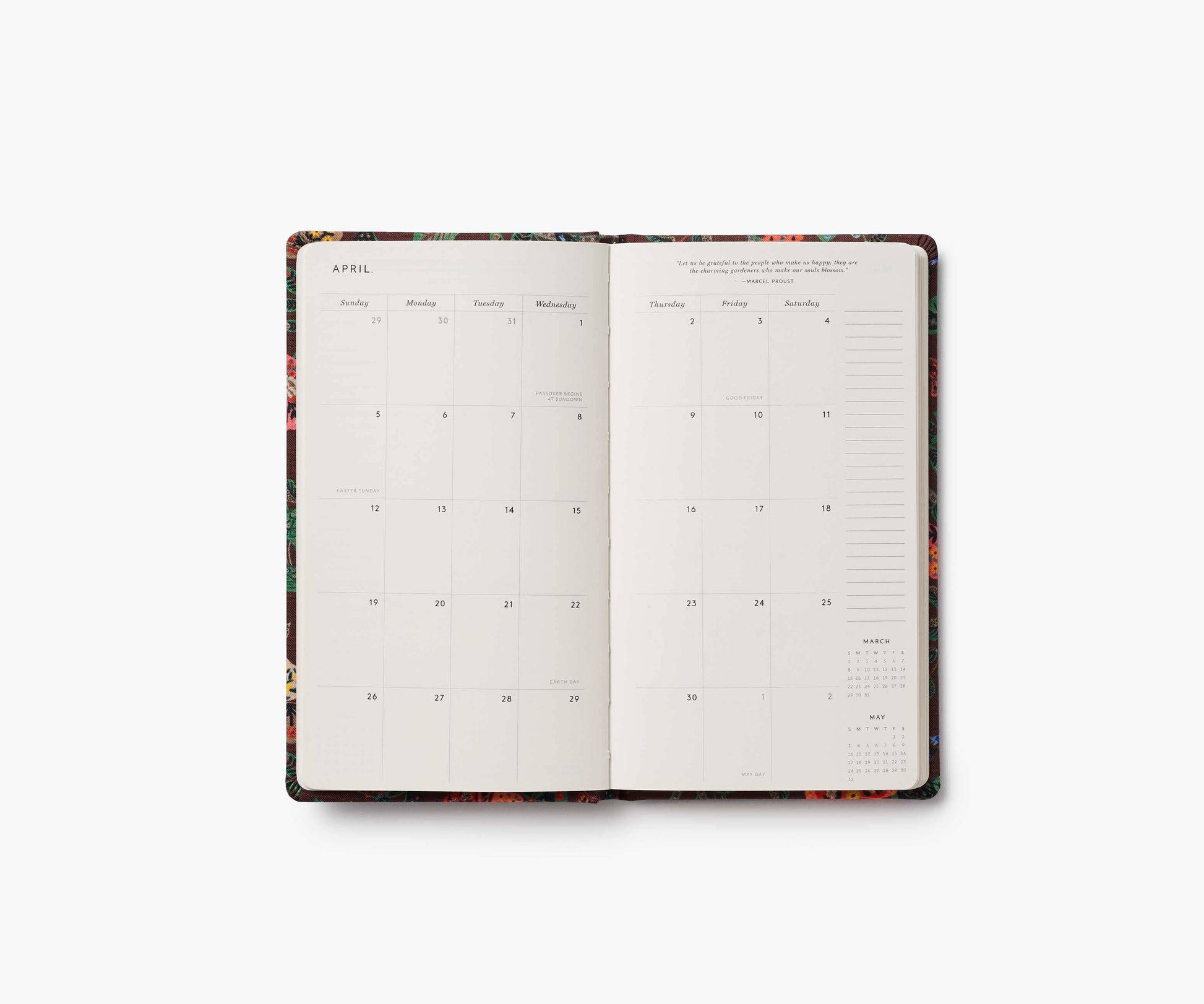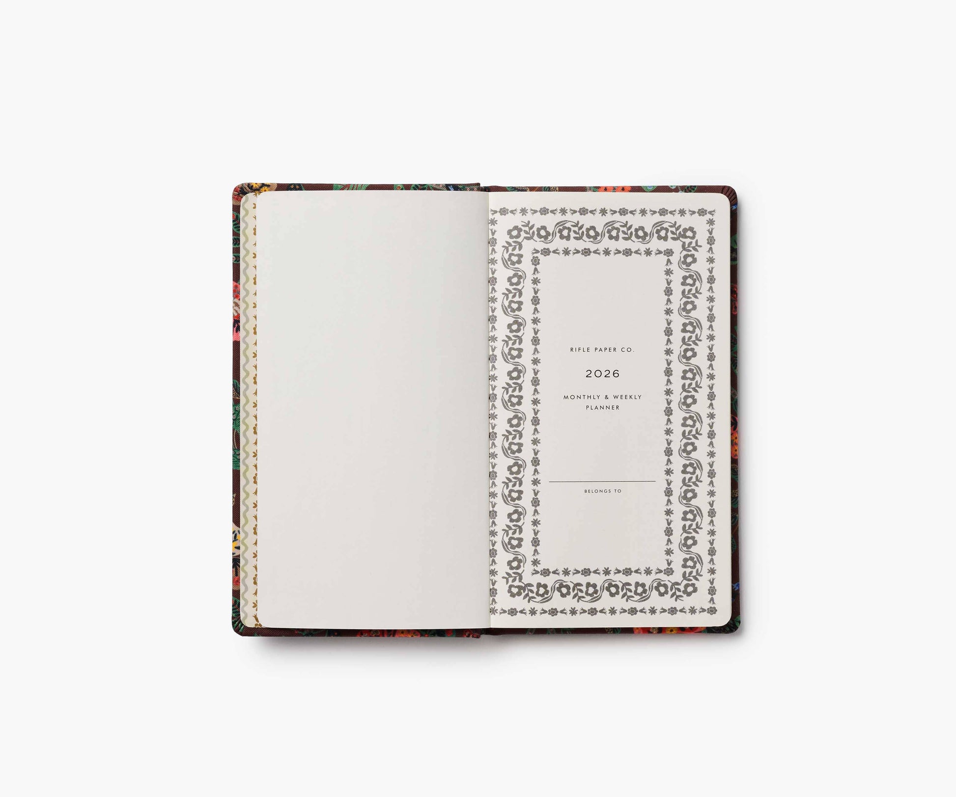 Great things come in small formats. The smallest planner in our lineup, our pocket planner features a hard, fabric-wrapped cover, monthly and bi-weekly page views, sections for important dates and notes, and illustrated interior pockets.